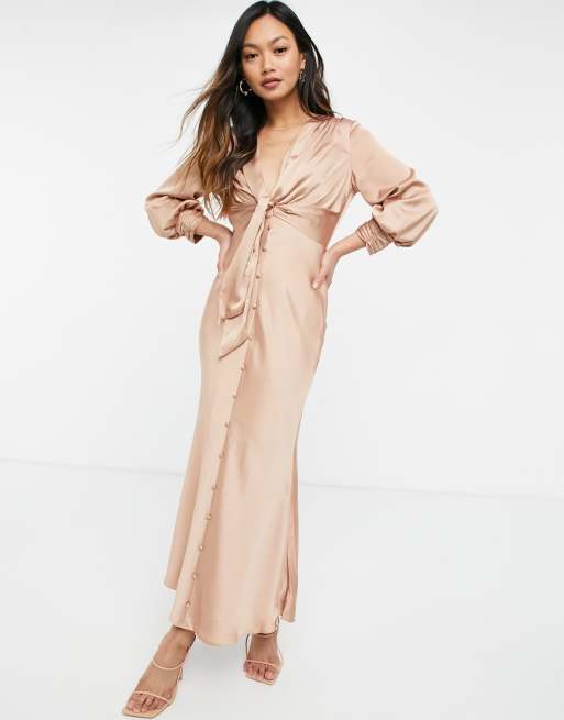 Long sleeve tie and button front satin maxi dress Regular price 13900 Sale price 7500 Save 46 Color black Color. How Warehouse uses cookies We use cookies that help us provide you with the best possible shopping experience with us. V Neck Button Front Twist Dress. Order now with multiple payment and delivery options including free and unlimited next day delivery TsCs apply. The worlds destination for incredible fashion for incredible women. Shop Satin Button Front Midi Dress from our Midi Dress collection - the perfect piece for a every occasion. Buy ASOS EDITION Alyssa satin wedding dress with blouson sleeve and button front at ASOS.